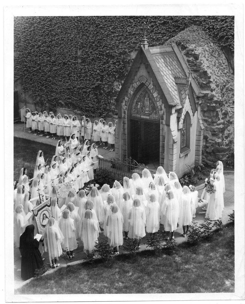 That same book also includes in the timeline: “1895 – Grotto on mother house grounds moved from south of St. Mary’s Hall to location east of chapel.” That 1895 grotto was replaced by the current grotto that still stands on campus, which was dedicated in 1918, according to Sister Gilmore’s book.